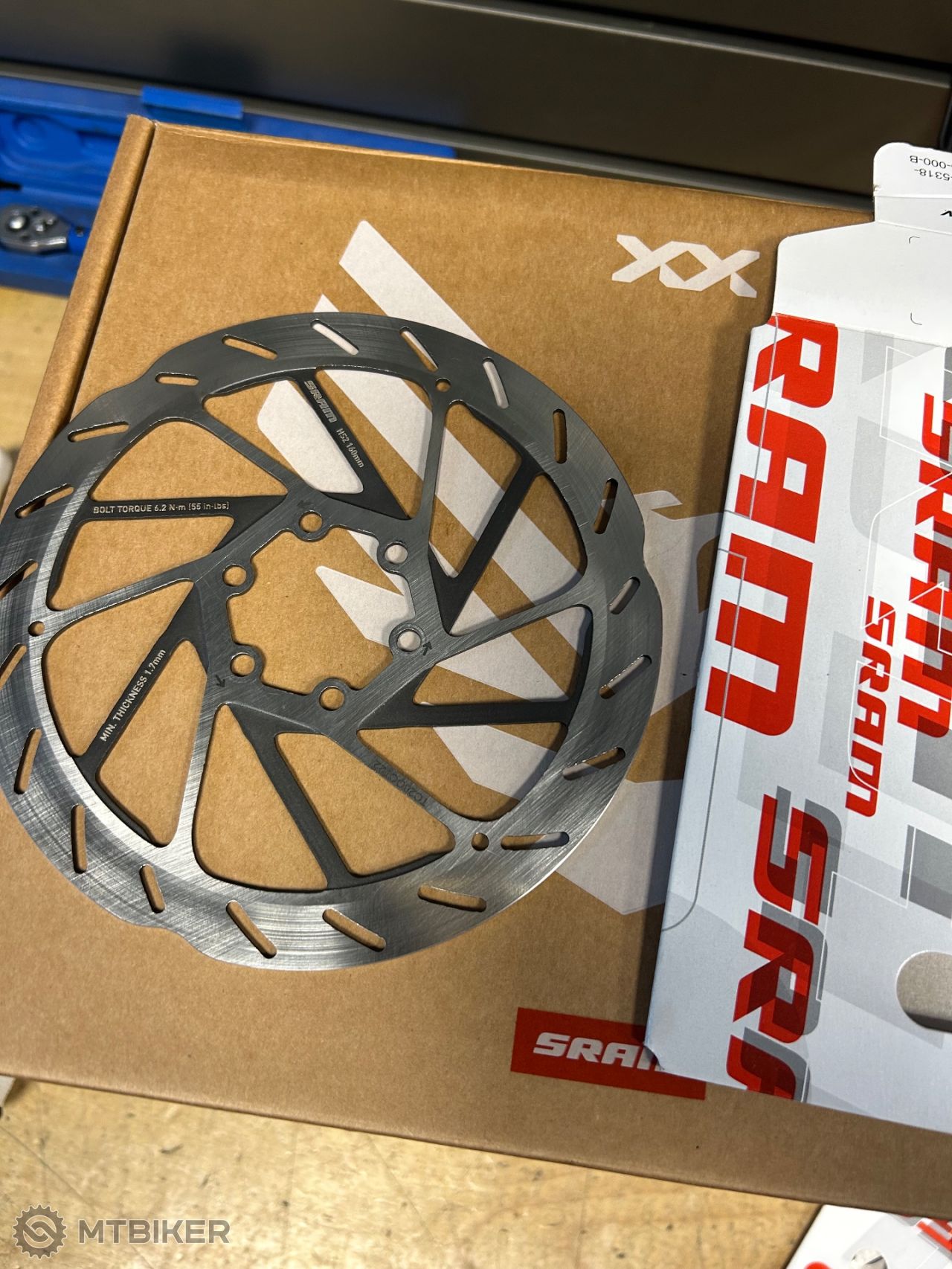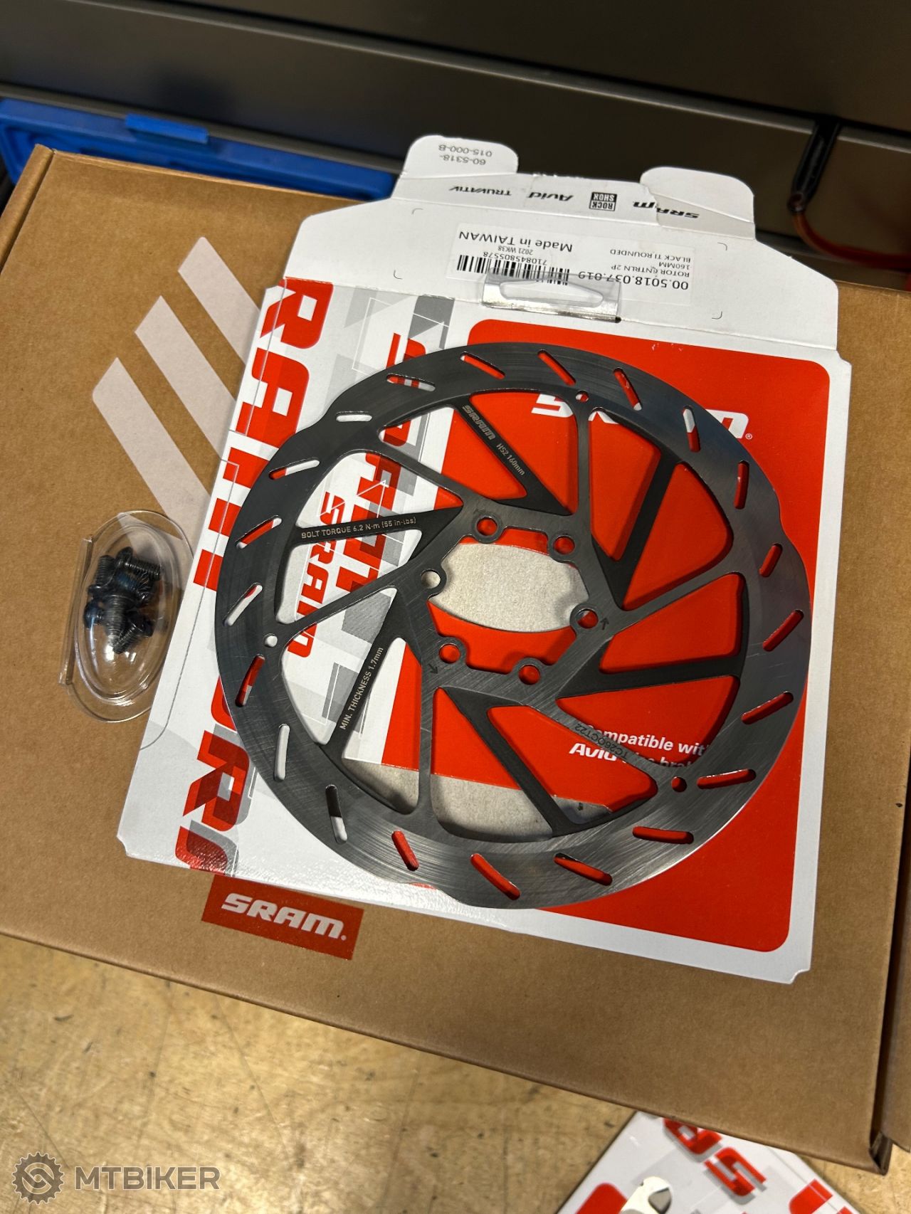 Prodám dva nové kotouče Sram HS2, uchyceni na 6 der. Včetně šroubu.
