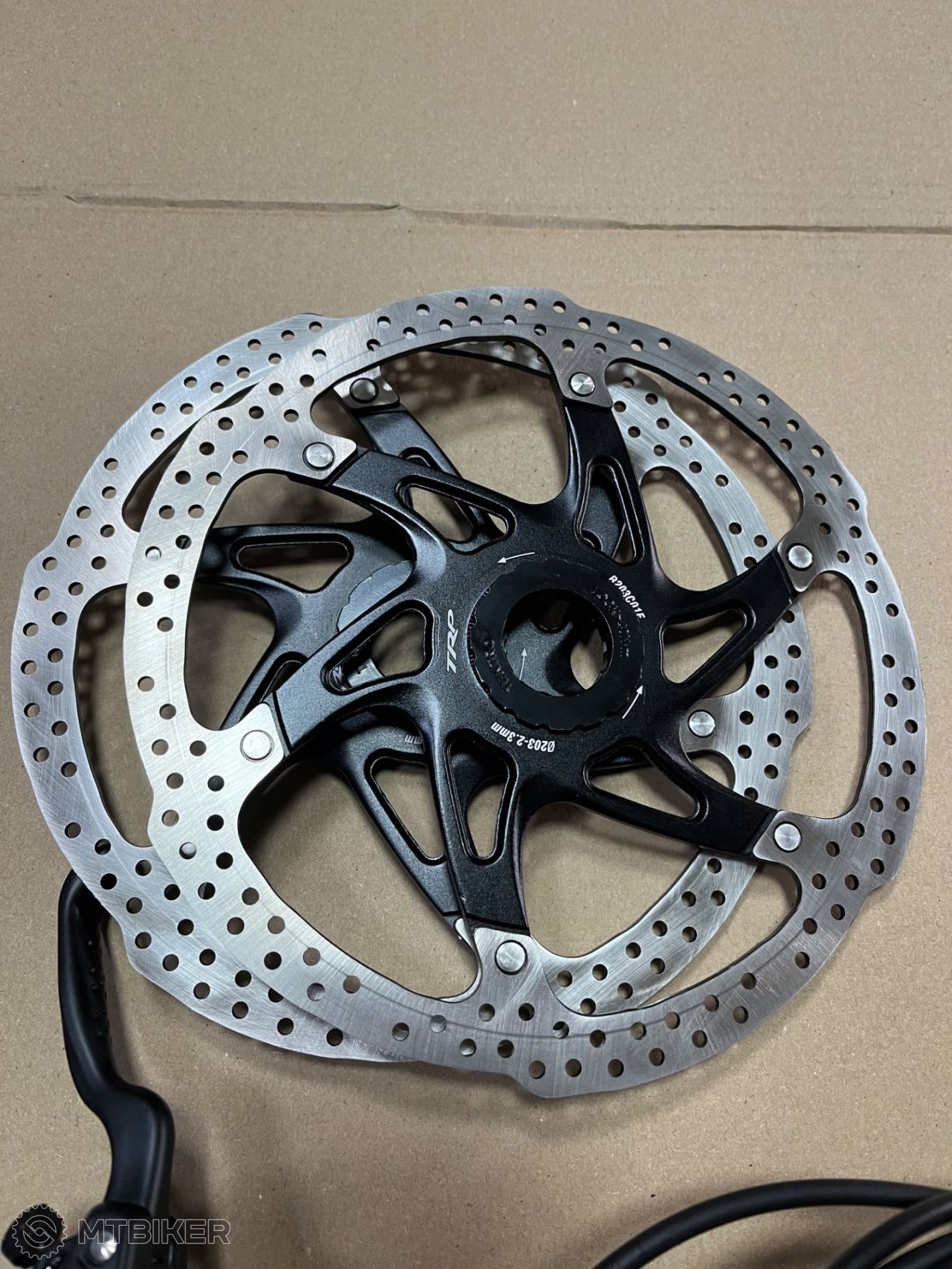 Predám nové hydraulické brzdy TRP Slate EVO E.2.3 s kotúčami 203/203mm v hrúbke 2,3mm. Dlžky hadíc P82cm, Z165cm. Zadná brzda je bez oleja, treba ju naplniť a odvzdušniť - minerálny olej. Brzdy sú masívne - vhodné na ebajk alebo na zjazd, enduro, pre tahšieho jazdca.