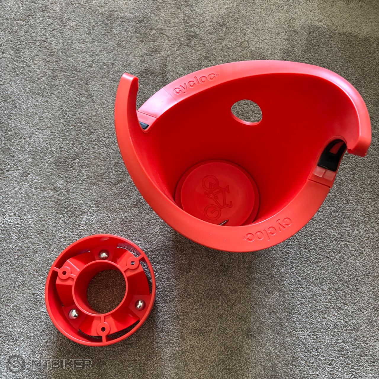 Prodám ze zdi demontovaný držák na kolo na zeď značky CYCLOC Super Hero oranžové barvy - vhodné pro pedály Speedplay, Look a SPD. Stav dle foto.